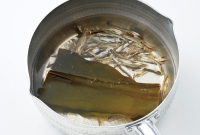 材料(作りやすい分量):煮干し 12g、だし昆布 10g、水 4と1/4カップ