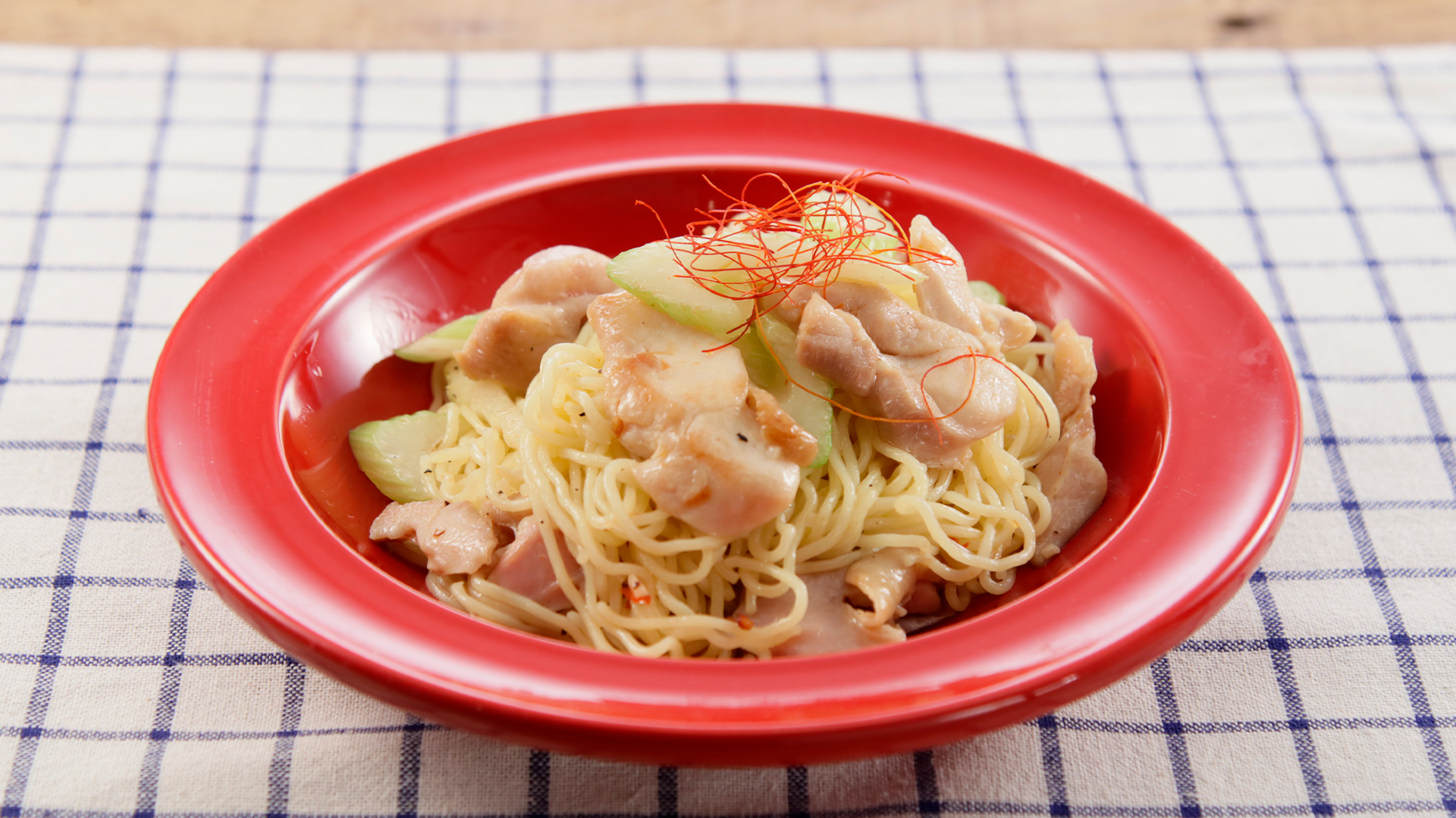 鶏肉とセロリのピリ辛塩焼きそば