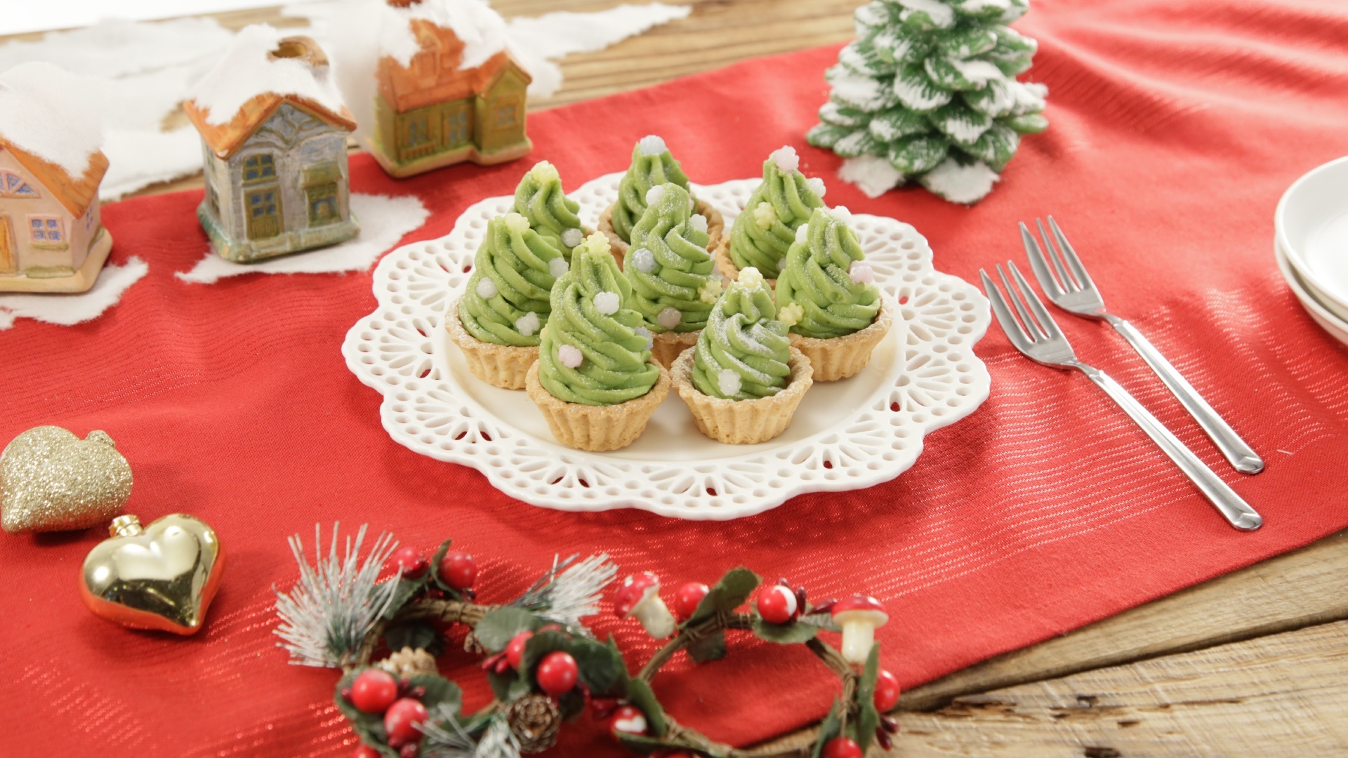 絞り袋に入れ、星形口金でタルトの上に搾る。