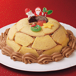 スポンジを焼かなくてもできる楽しいクリスマスケーキ。よ~く冷やして召し上がれ!