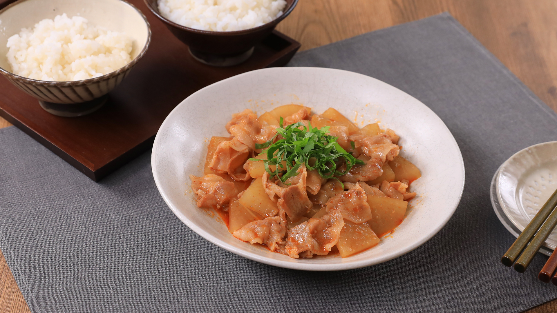 レンチンおかず!韓国風豚ばら大根