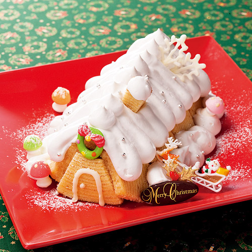 器に1)のバウムクーヘンをタテ長になるよう4枚並べて2)をこんもりとのせ、残りのバウムクーヘンを立てかけて屋根などを作り、冷蔵庫で冷やす。屋根にホイップクリームを絞り出し、トッピング材などで飾る。