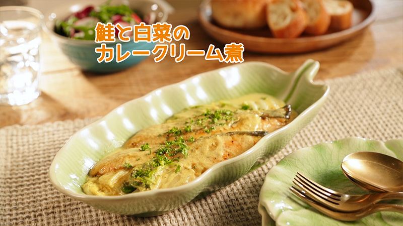 鮭が焼けたら白菜と☆の材料を入れ、煮汁が半分量になるまで煮込む。
