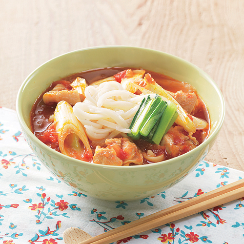 鍋にオリーブオイルをなじませ、長ねぎ、鶏肉を炒める。長ねぎがしんなりしたら、トマトソースと<A>を加えて約5分煮る。こしょうで味をととのえる。