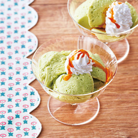 アボカド(むき身) 2個分(200g) [A] 牛乳 1と1/2カップ 生クリーム 1/2カップ 練乳 大さじ3 粉ゼラチン 10g 熱湯 大さじ4 ホイップクリーム(または生クリームを泡立ててグラニュー糖を加えたもの) 適量