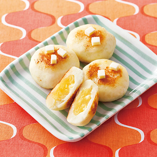 [2]を4等分して、それぞれにピザ用チーズを1/4量ずつ包み、円盤状に成形する
