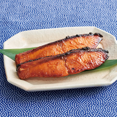 漬けダレを軽く取り除き、グリルやフライパンで色よく焼いて火を通す。
