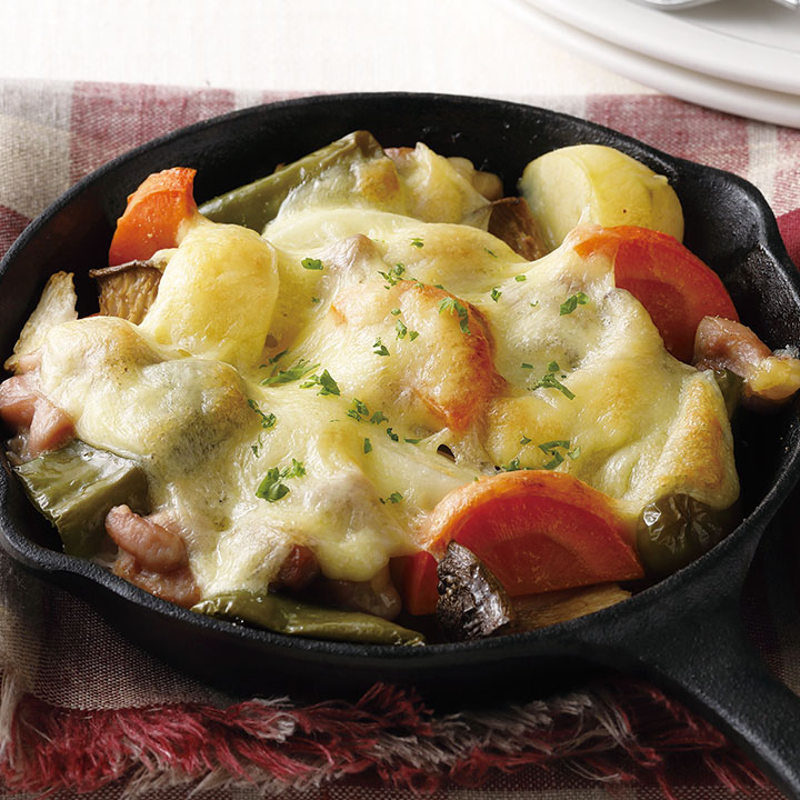 [A] じゃがいも 1個 玉ねぎ 1個 にんじん 1/2本 ピーマン 1個 エリンギ 2本 オリーブ油 適量 刻みパセリ 適宜