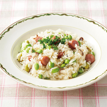 枝豆とソーセージの炊き込みピラフ