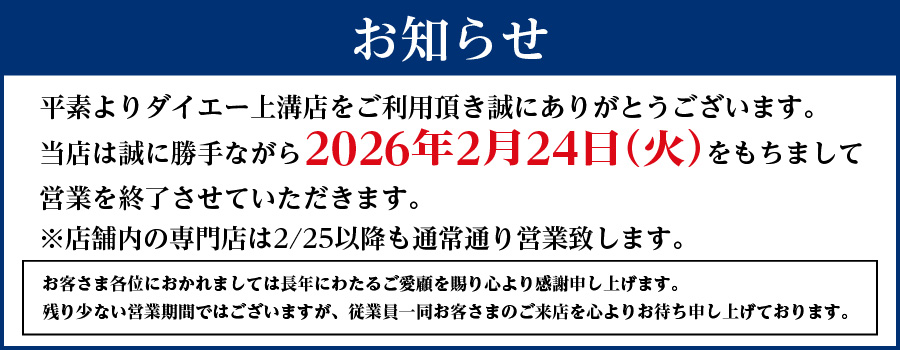 ※2階医薬品売場は2/3(火)をもちまして営業終了しました。