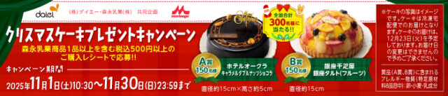 ダイエー×森永乳業共同企画 クリスマスケーキプレゼントキャンペーン!
