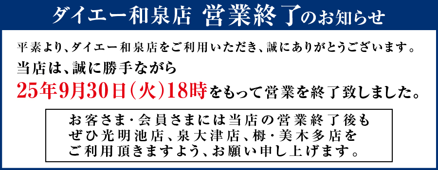 ダイエー和泉店は9月30日(火)18時をもって営業終了(閉店)いたします。